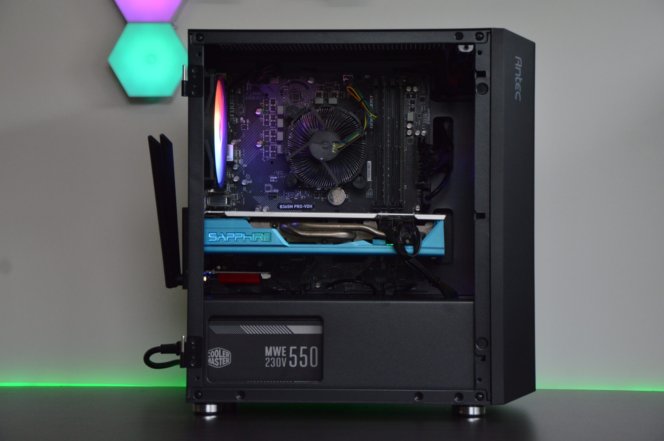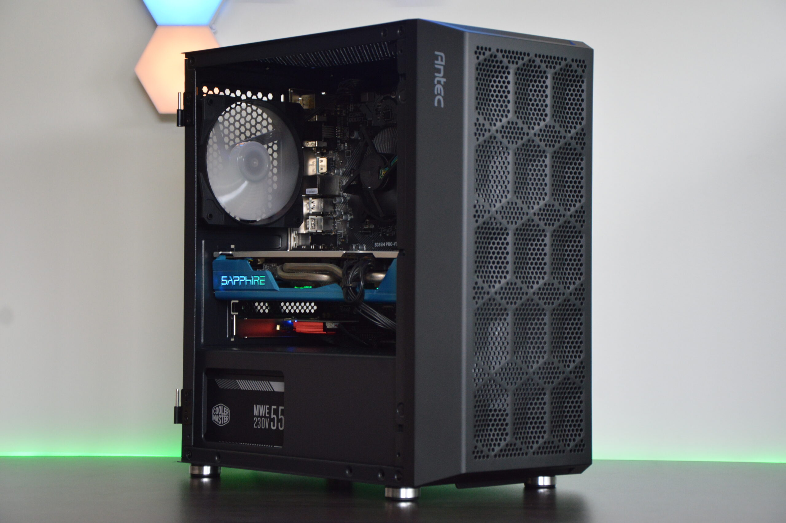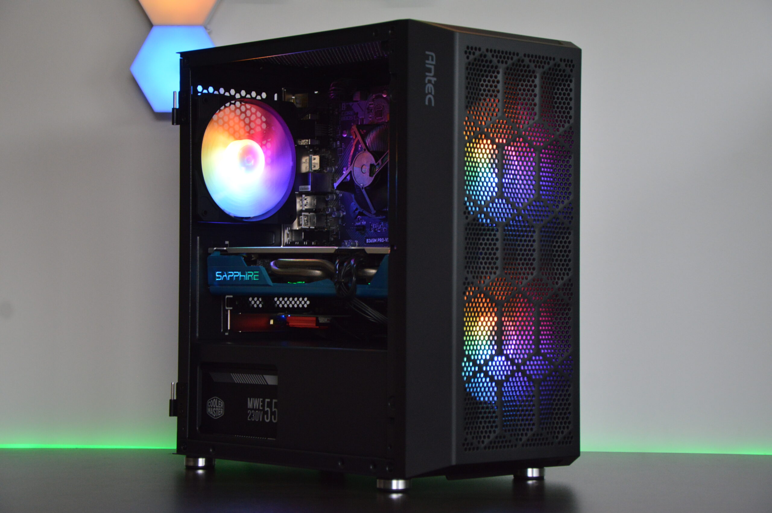 - Antec NX200M Case – tempered-glass side panel with RGB fans
